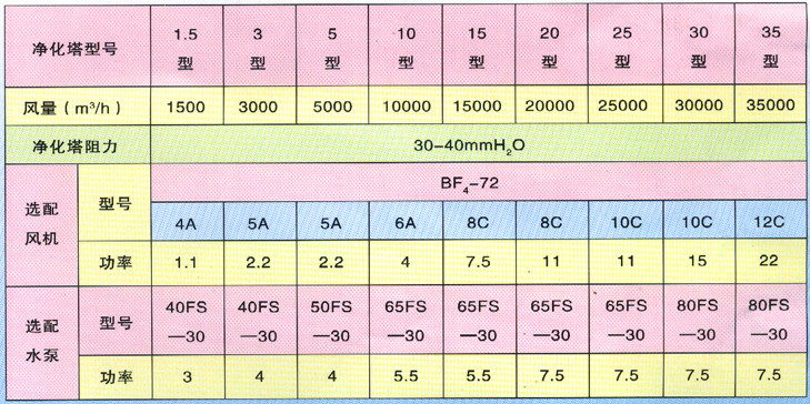 BSG-2型玻璃钢酸雾净化塔、玻璃刚风机、耐腐蚀水泵选用表